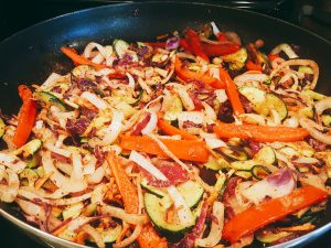 Directions for filling: Saute yellow onion and cabbage together in olive oil and with salt and pepper to taste. Remove from pan. Saute zucchini and red pepper in olive oil with salt and pepper. Return onion and cabbage to pan and add meat, spice blend, jalapeno and garlic. Add 1/3 cup water, cover and simmer until heated through, about 5 minutes.